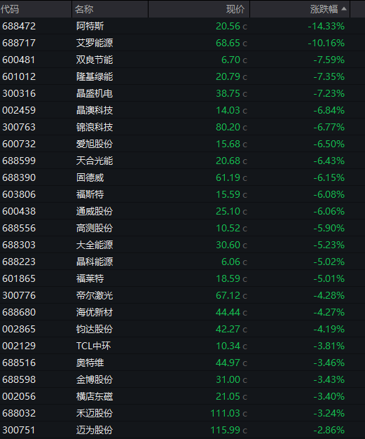 11月12日,A股光伏板块板块重挫,光伏50ETF盘中一度跌超50%,截至收盘,光伏50ETF跌3.85%。个股方面,阿特斯盘中一度跌超17%,收盘下跌14.3%,龙头股隆基绿能、通威股份、晶澳股份纷纷大跌。