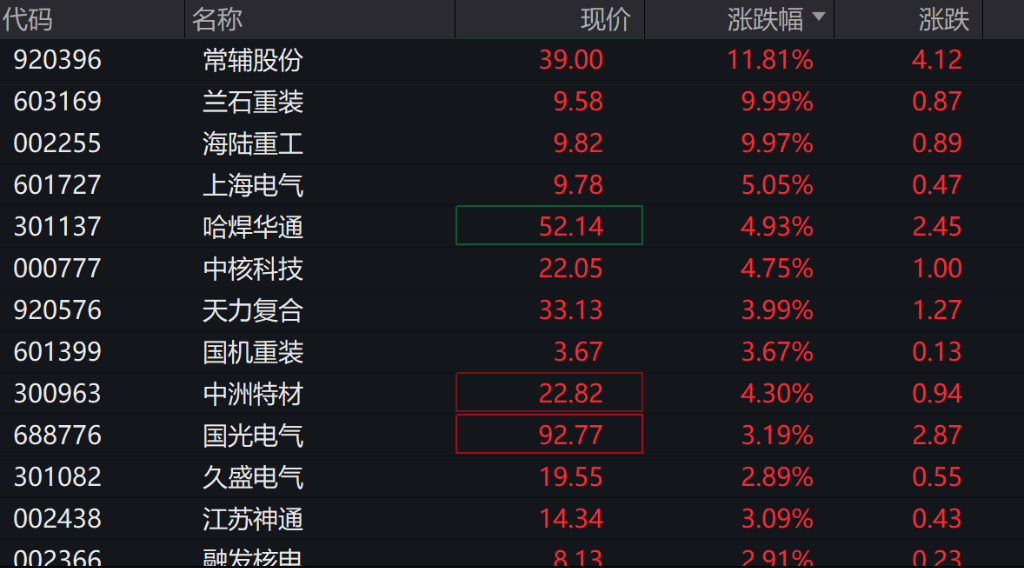 A股可控核聚变概念反复活跃,浙富控股、海陆重工竞价涨停,常辅股份涨超10%,兰石重装、天力复合、上海电气、久立特材、国机通用等纷纷高开,消息面上,中国科学院金属所成功制备“人造太阳”关键核心材料。