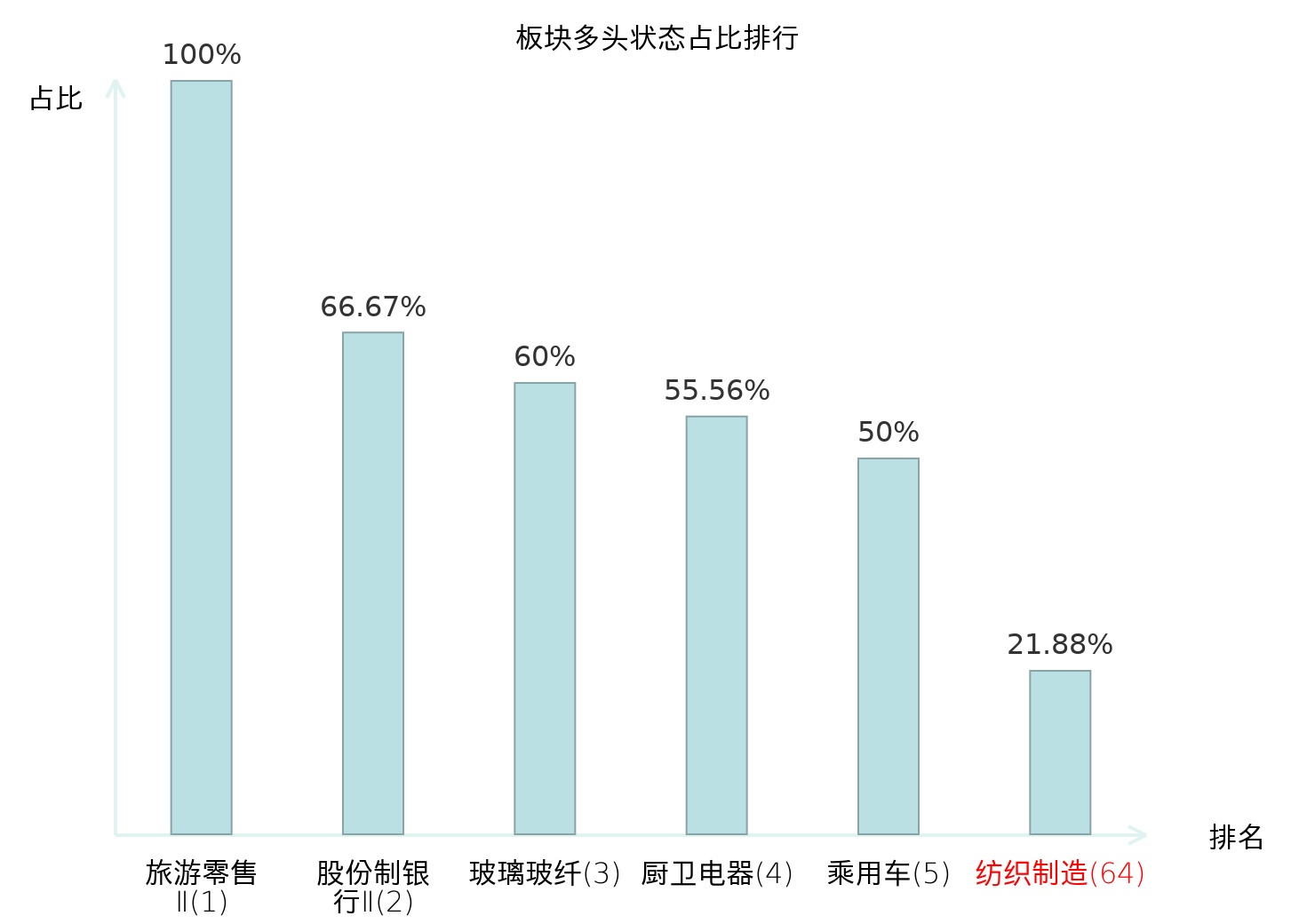 全市场所有行业板块中主力多头状态占比排名中,旅游零售Ⅱ板块位居第一。航天装备Ⅱ板块名次提升最快,较昨日上升91位。