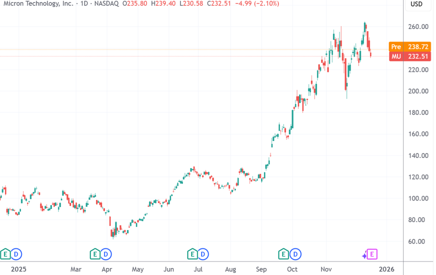 周三收盘后,交易员们还将关注另一只AI牛股美光科技的财报。上周博通和甲骨文发布财报后的接连大跌,对市场的拖累影响至今。美光的不同之处在于,由于存储周期天然的限制,即便在年内暴涨177%之后,其未来12个月的预期市盈率也只有12倍,远低于其他“AI牛股”。