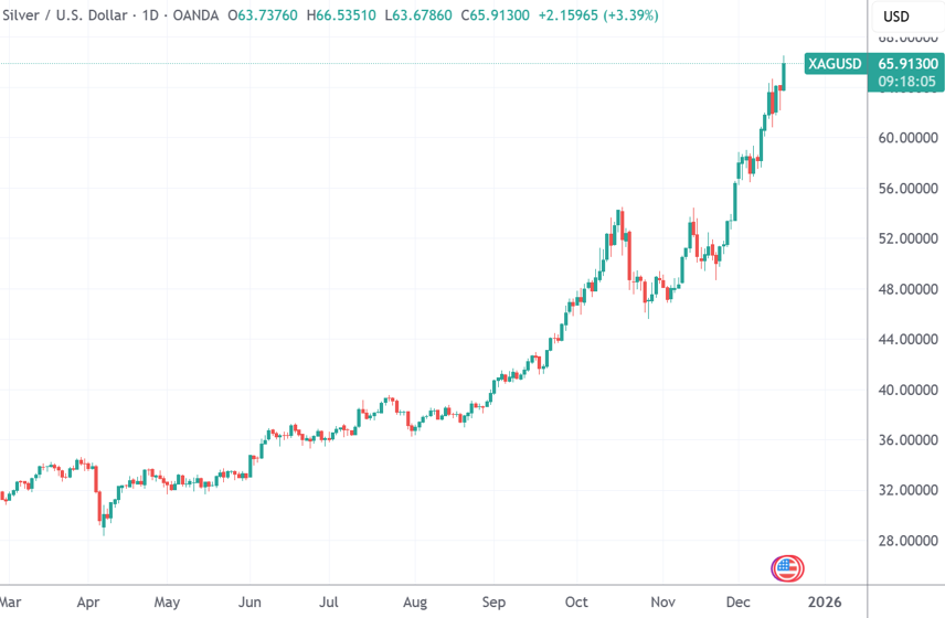 地缘风波也推动现货黄金日内最高冲至4342美元/盎司,逼近10月创下的4381美元纪录;现货白银历史首次冲上每盎司66美元的关口,铂金也达到2008年以来的最高点。