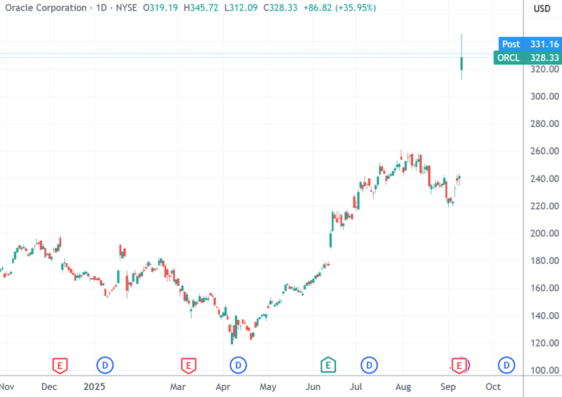 其中最为炸裂的自然是甲骨文,仅仅一个交易日市值暴增2438亿美元(约合人民币1.73万亿元),收盘市值达到9222.24亿美元。公司今年累计涨幅达到98%。