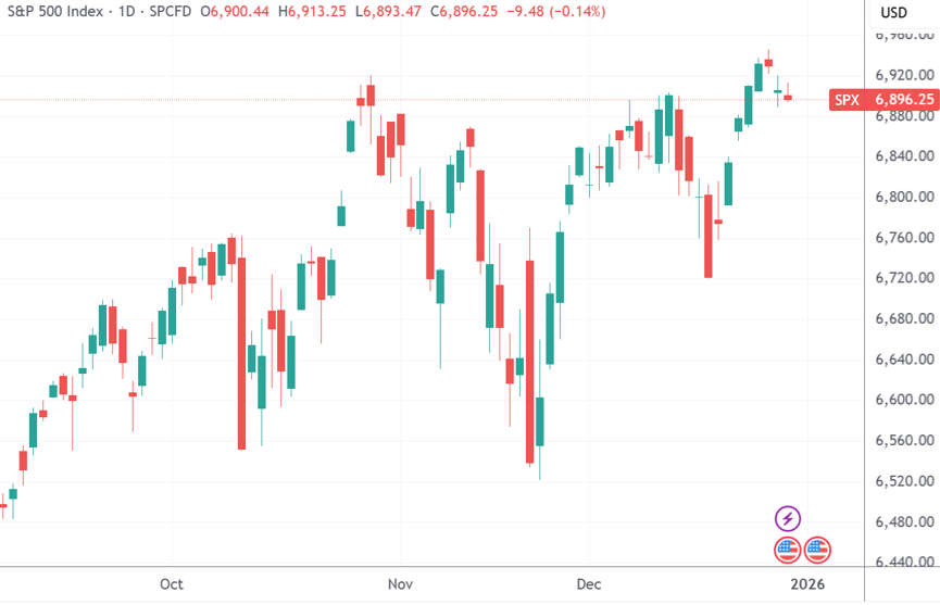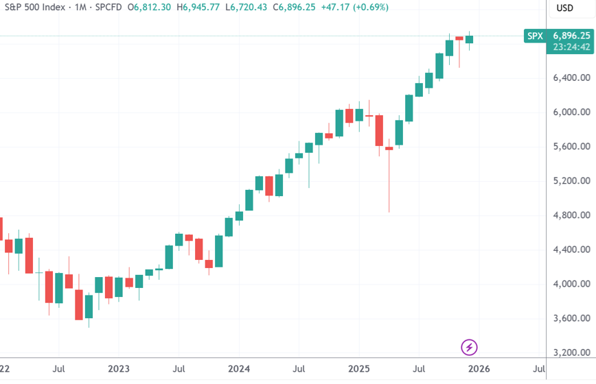 只要今天晚上不跳水,标普500指数将携“月线8连涨”的姿态进入2026年,这也是该指数自2017年以来最长的连涨状态。
