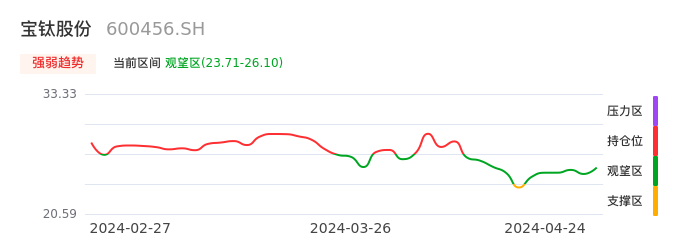 04月24日,宝钛股份收报25.02,股价涨幅1.67%,成交金额1.45亿元,换手率1.23%。