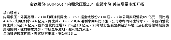 值得注意的是:2024年04月广发证券的宫帅/王乐分析师,首次发布关于宝钛股份的研究报告,标题为:宝钛股份(600456):内需承压致23年业绩小降 关注增量市场开拓。