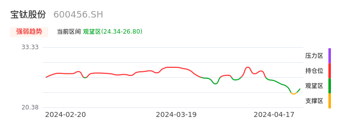 04月17日,宝钛股份收报24.95,股价涨幅3.27%,成交金额1.81亿元,换手率1.53%。