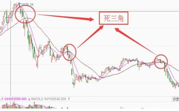 死三角的形态参照均线系统,日均线系统设置为5、10、30这三条参数。在5MA、10MA、30MA线组合中,三条均线出现死叉的情况,围成一个三角形状,即为死亡三角形态。