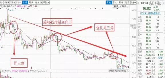 死三角形态出现后股价经过一轮下跌后反弹确认或修复,此时再次出现的三角形态则称之为强化三角形,也是双死三角形态,同样也有多死三角形态。