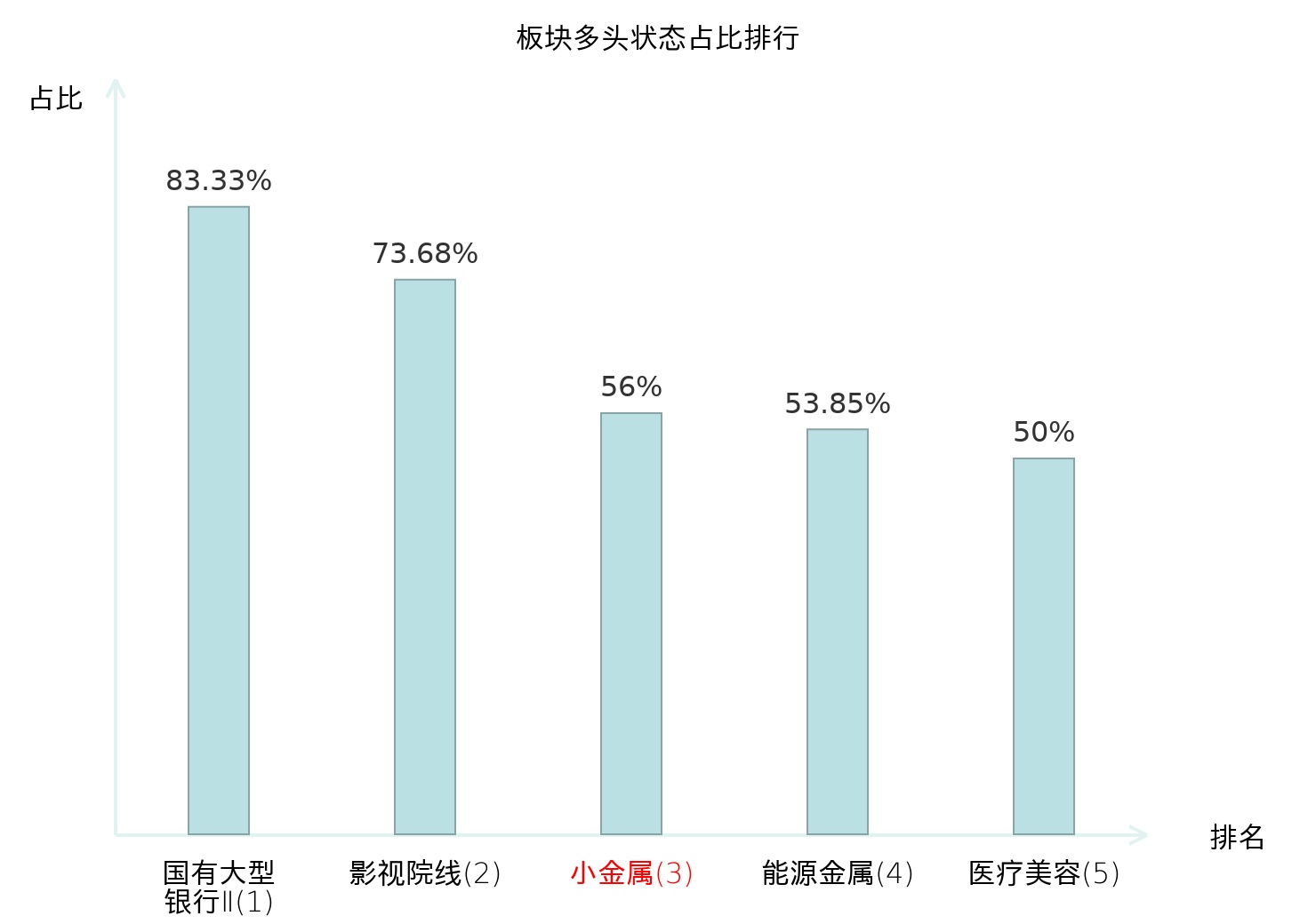 全市场所有行业板块中主力多头状态占比排名中,国有大型银行Ⅱ板块位居第一。电视广播Ⅱ板块名次提升最快,较昨日上升99位。