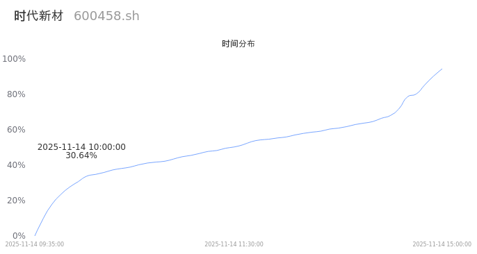 600458时代新材2025年11月14日成交11.69万手,成交金额1.60亿,相较昨日放量1.16万手,换手率1.44%,成交清淡。