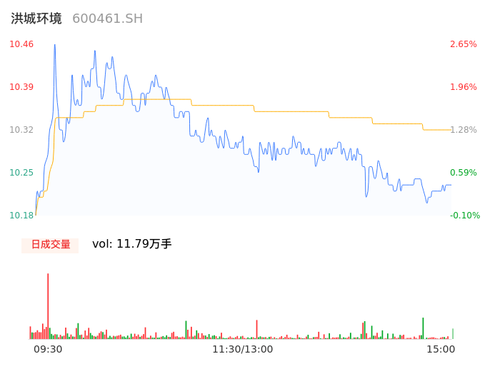 04月30日,洪城环境收报10.21,股价涨幅0.20%,成交金额1.22亿元,换手率1.03%。