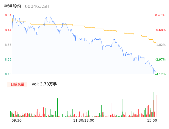 04月12日,空港股份收报8.19,股价涨幅-3.65%,成交金额3116.07万元,换手率1.24%。
