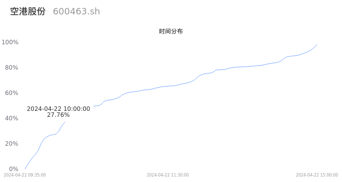 600463空港股份2024年04月22日成交2.59万手,成交金额1887.85万元,相较昨日放量778手,换手率0.86%,成交清淡。