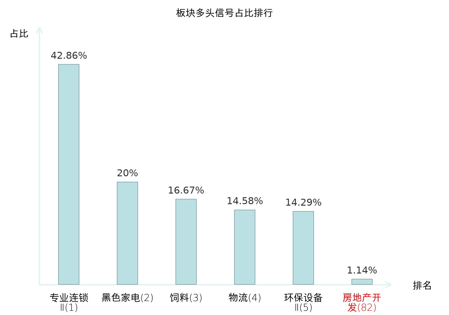 全市场所有行业板块中主力多头信号占比排名中,专业连锁Ⅱ板块位居第一。专业连锁Ⅱ板块名次提升最快,较昨日上升122位。