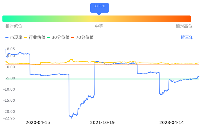 蓝光发展当前市净率PB为-0.24,在所属的房地产开发中,市净率PB排106,前五名分别为荣盛发展市净率0.22、金科股份市净率0.27、世茂股份市净率0.32、中南建设市净率0.35、福星股份市净率0.36。蓝光发展当前市净率PB为-0.24,超过近3年20.22%的历史数据。
