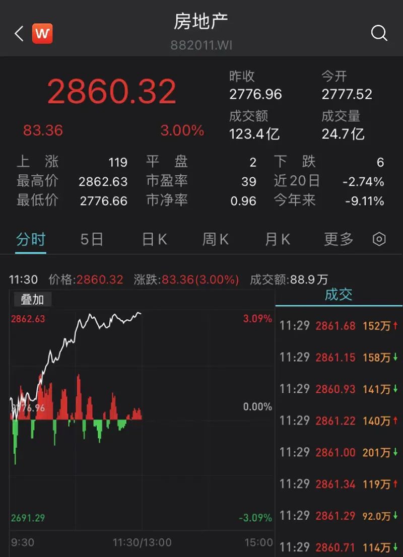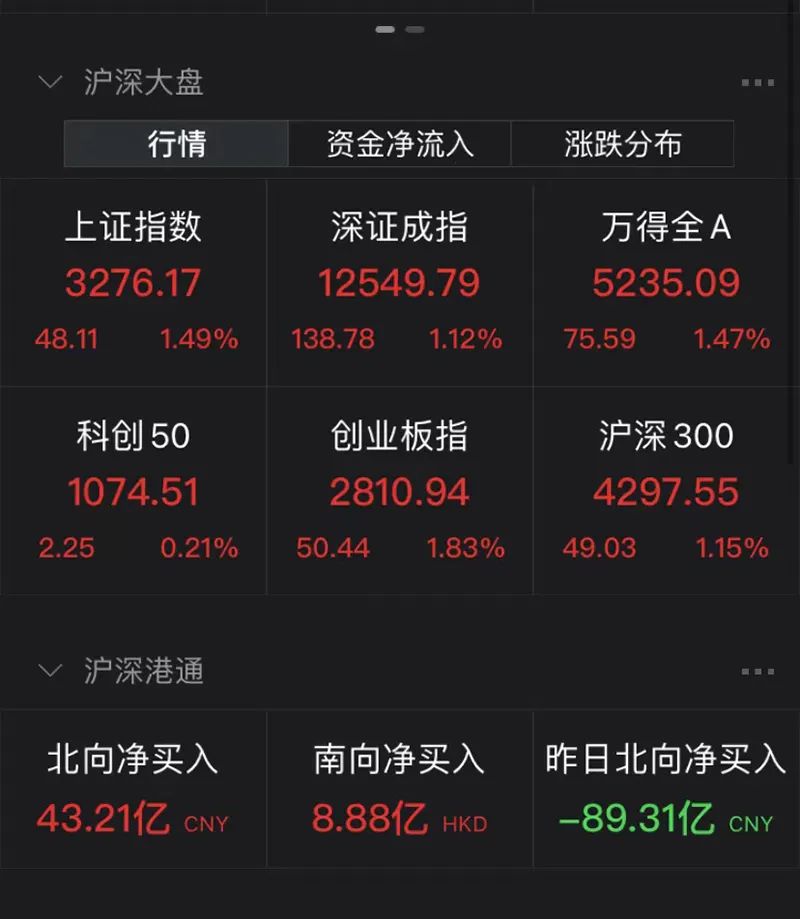 盘面上,“牛市旗手”券商板块出现异动,银行、地产等权重板块走强,助力沪指强势拉升。生物医药、食品饮料等传统白马股则表现稍弱。总体来看,两市上涨个股超4000只,仅半日已有百股涨停或涨超10%。北向资金也回流超40亿元。