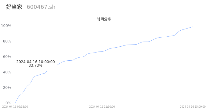 根据成交分布分析,该股票当天放量成交,成交清淡。时间上看,早盘前半小时成交量占据当天总成交量的33.73%;价格上看,成交呈现中间峰。成交分布分析主要研究股票成交的分布特性,不具有预测功能,请知悉。
