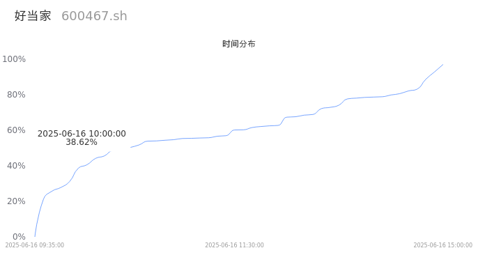 根据成交分布分析,该股票当天缩量成交,成交清淡。时间上看,早盘前半小时成交量占据当天总成交量的38.62%;价格上看,成交呈现无峰态。成交分布分析主要研究股票成交的分布特性,不具有预测功能,请知悉。