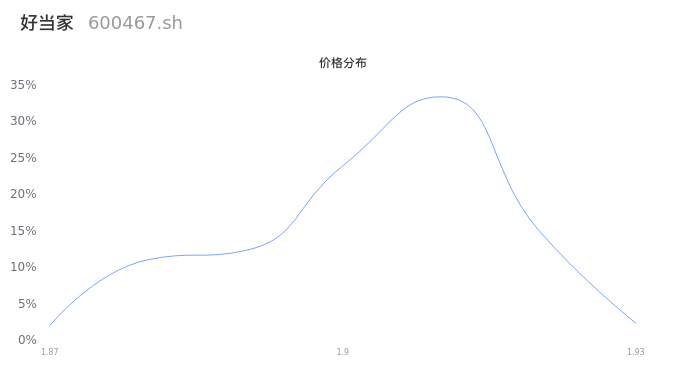 然后我们来看下当日成交的价格分布。经过分析发现,该股票当日成交价格波动低于10个最小波动价位,由于可以参考的样本量非常少,价格分布分析的结果不具有指导意义,下图仅供参考。