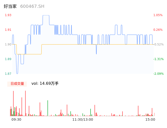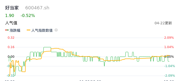 04月22日,好当家收报1.90,股价涨幅-0.52%,成交金额2794.11万元,换手率1.01%。