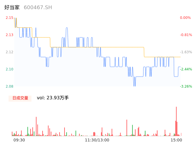 04月10日,好当家收报2.10,股价涨幅-2.33%,成交金额5046.65万元,换手率1.64%。
