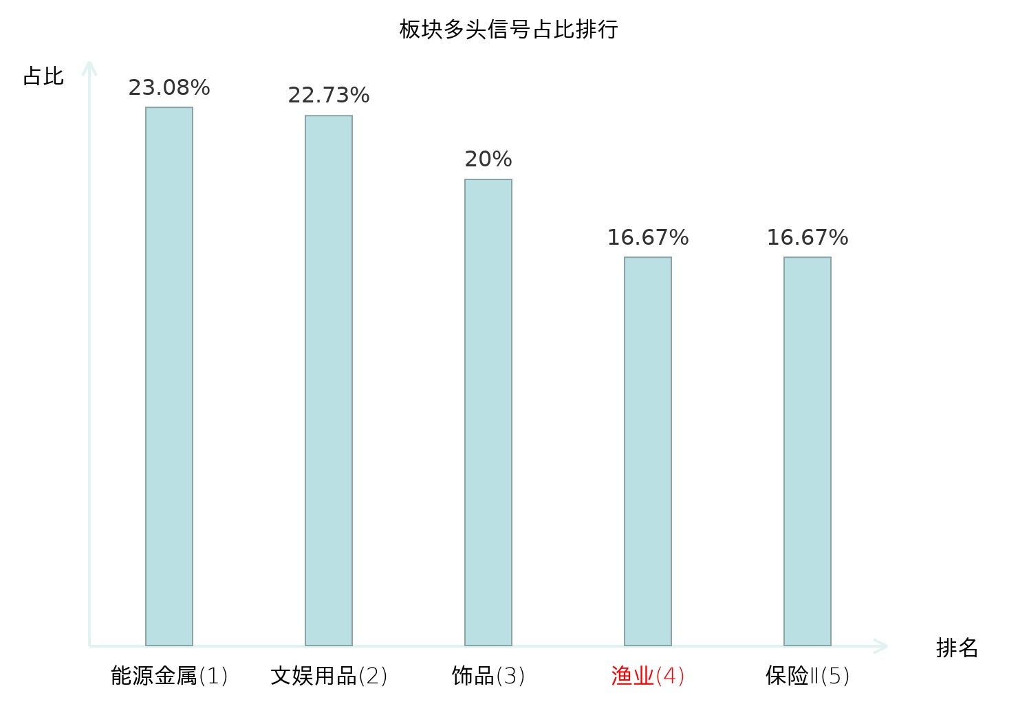 全市场所有行业板块中主力多头信号占比排名中,能源金属板块位居第一。保险Ⅱ板块名次提升最快,较昨日上升120位。