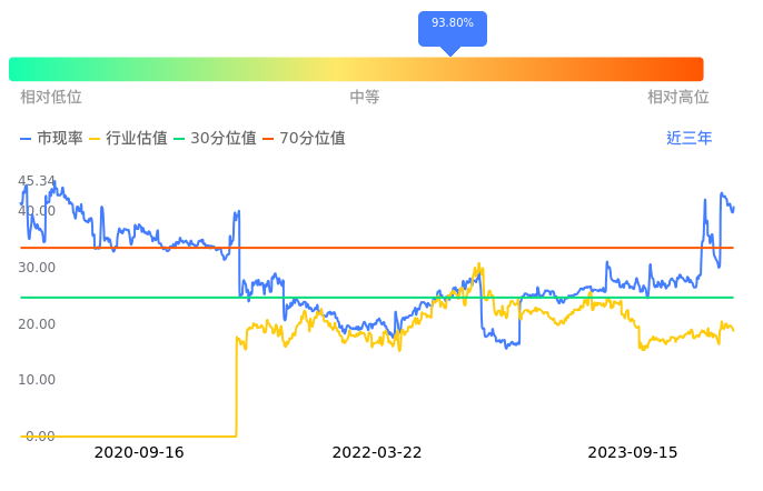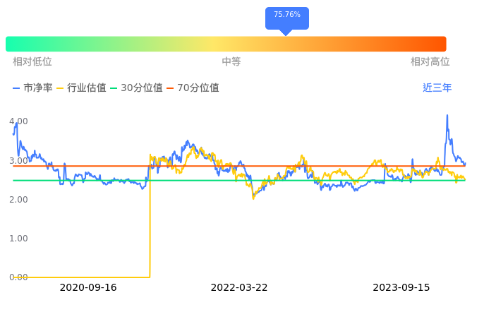百利电气当前市净率PB为3.00,在所属的电网设备中,市净率PB排78,前五名分别为众业达市净率1.14、中国西电市净率1.18、森源电气市净率1.18、九洲集团市净率1.20、宏力达市净率1.24。百利电气当前市净率PB为2.95,超过近3年75.76%的历史数据。