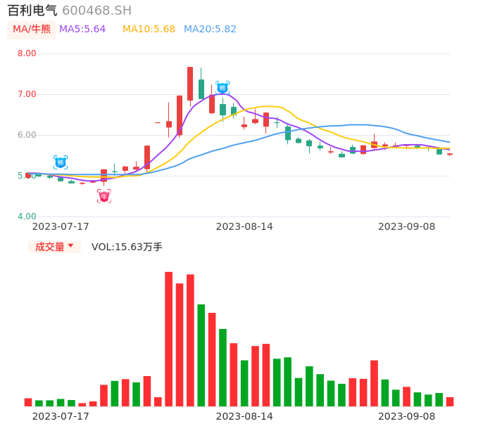 09月08日,百利电气收报5.54,股价涨幅0.18%,成交金额8651.04万元,换手率1.44%。