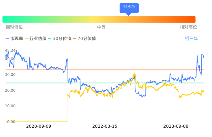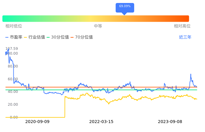 百利电气当前市盈率PETTM为47.18,在所属的电网设备中,市盈率PETTM排75名。前5名分别为特变电工PETTM4.40、华通线缆PETTM10.38、长园集团PETTM10.58、柘中股份PETTM11.92、正泰电器PETTM12.10。从PETTM估值走势数据来看,百利电气当前市盈率PETTM为47.18,超过近3年69.09%的历史数据。