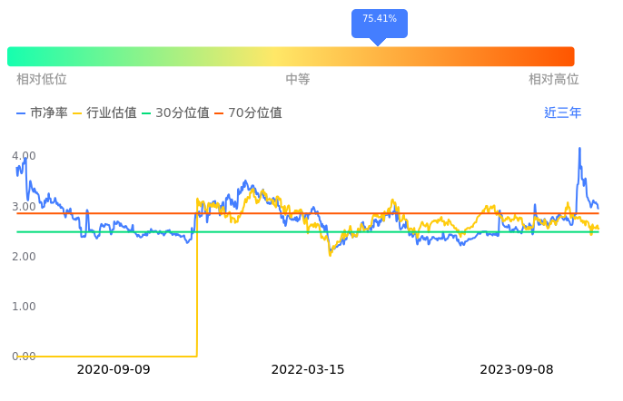 百利电气当前市净率PB为3.02,在所属的电网设备中,市净率PB排77,前五名分别为中国西电市净率1.16、众业达市净率1.17、九洲集团市净率1.21、长园集团市净率1.24、森源电气市净率1.24。百利电气当前市净率PB为2.96,超过近3年75.41%的历史数据。