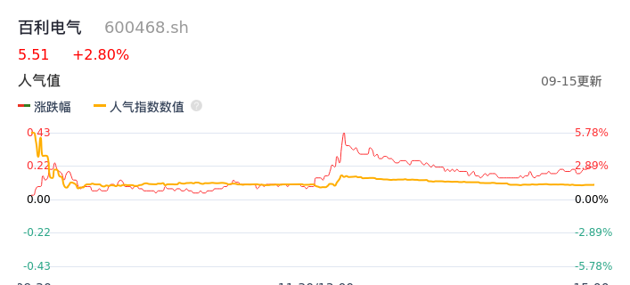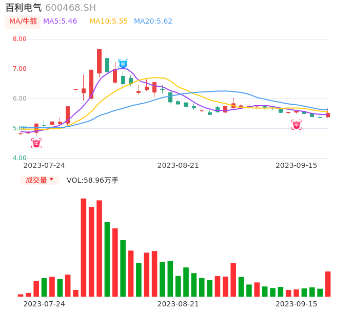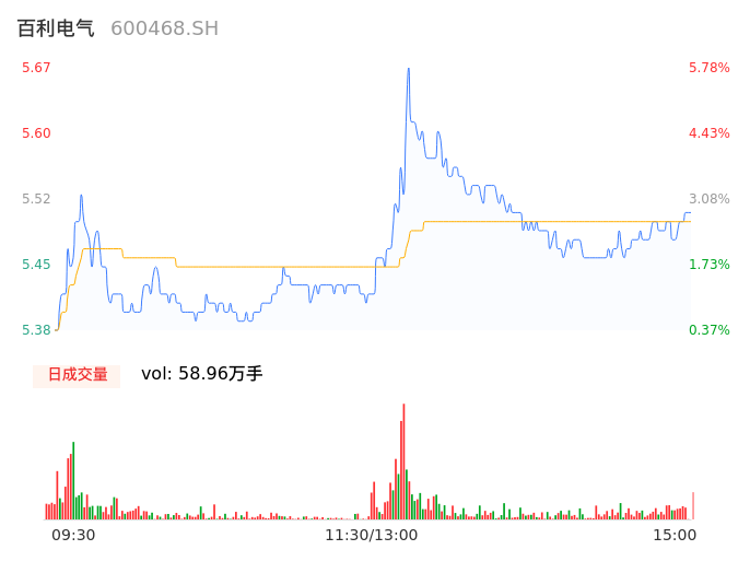 09月15日,百利电气收报5.51,股价涨幅2.80%,成交金额3.24亿元,换手率5.42%。