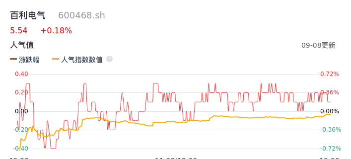 09月08日,百利电气收报5.54,股价涨幅0.18%,成交金额8651.04万元,换手率1.44%。