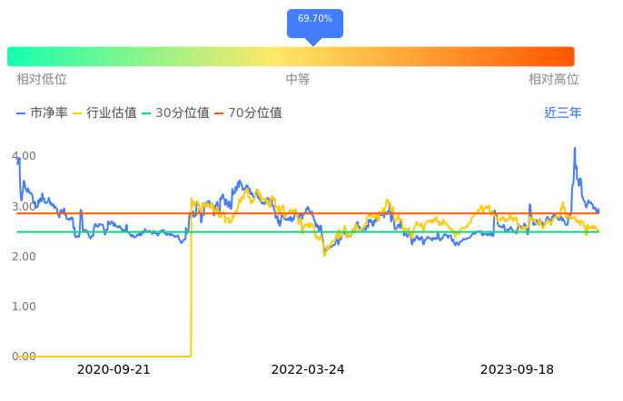 百利电气当前市净率PB为2.86,在所属的电网设备中,市净率PB排77,前五名分别为众业达市净率1.14、中国西电市净率1.16、森源电气市净率1.17、九洲集团市净率1.20、长园集团市净率1.21。百利电气当前市净率PB为2.80,超过近3年69.70%的历史数据。