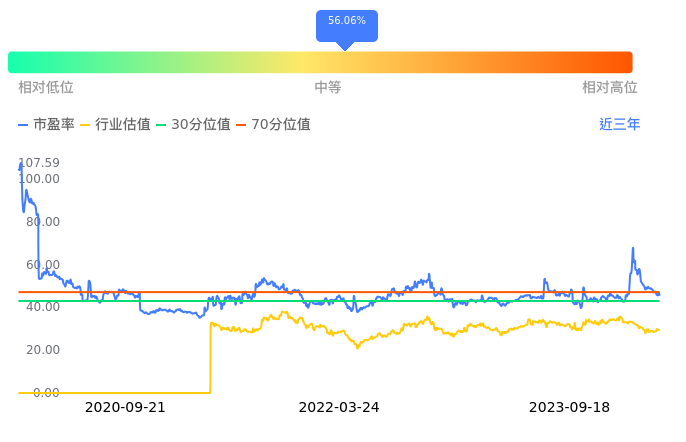 百利电气当前市盈率PETTM为44.63,在所属的电网设备中,市盈率PETTM排74名。前5名分别为特变电工PETTM4.46、华通线缆PETTM10.10、长园集团PETTM10.30、柘中股份PETTM11.41、正泰电器PETTM11.94。从PETTM估值走势数据来看,百利电气当前市盈率PETTM为44.63,超过近3年56.06%的历史数据。