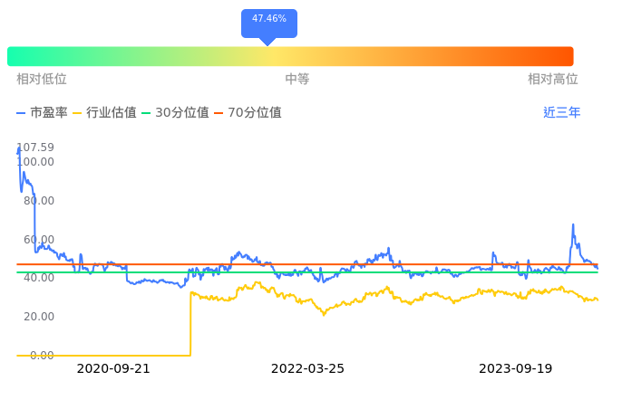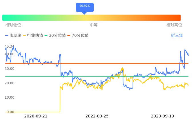 百利电气当前市盈率PETTM为44.29,在所属的电网设备中,市盈率PETTM排73名。前5名分别为特变电工PETTM4.43、华通线缆PETTM10.01、长园集团PETTM10.28、柘中股份PETTM11.37、正泰电器PETTM11.80。从PETTM估值走势数据来看,百利电气当前市盈率PETTM为44.29,超过近3年47.46%的历史数据。