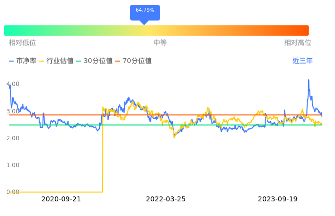 百利电气当前市净率PB为2.83,在所属的电网设备中,市净率PB排77,前五名分别为众业达市净率1.14、中国西电市净率1.15、森源电气市净率1.16、九洲集团市净率1.18、长园集团市净率1.20。百利电气当前市净率PB为2.78,超过近3年64.79%的历史数据。