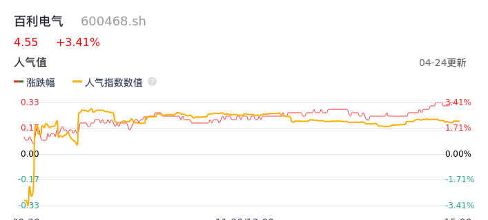 04月24日,百利电气收报4.55,股价涨幅3.41%,成交金额5816.42万元,换手率1.19%。