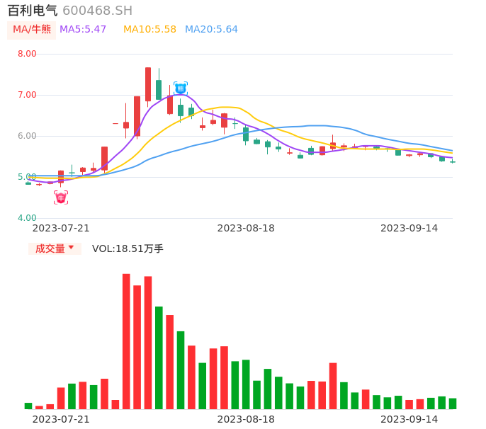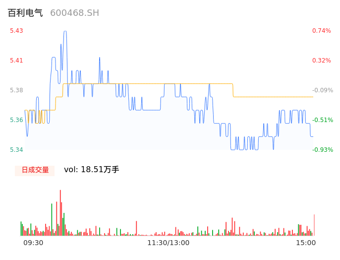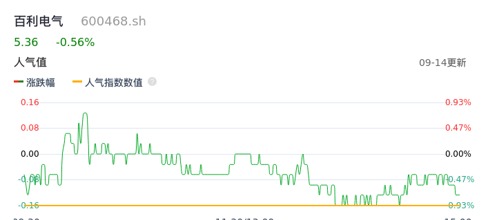 09月14日,百利电气收报5.36,股价涨幅-0.56%,成交金额9951.70万元,换手率1.70%。
