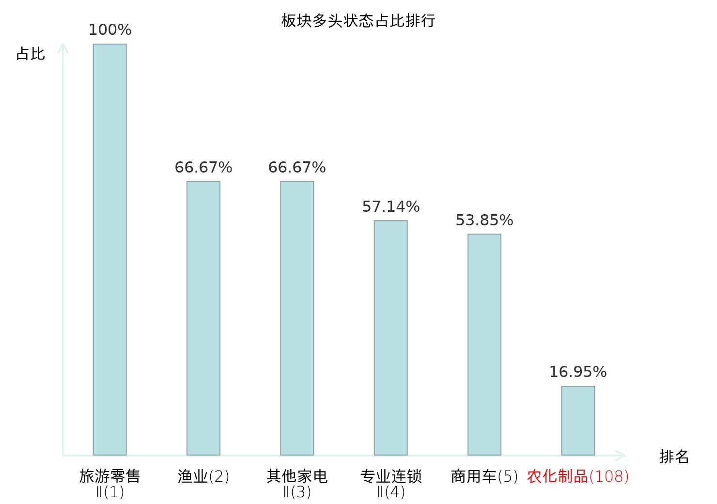 从主力宝信号数据分析,六国化工所属的农化制品板块中共有10只股票处于主力多头状态,主力多头状态占比在全行业中排名第108位,较昨日上升3位。较高的排名表明主力对于该板块整体看多意愿较强,此次排名上升可能反映了主力对该板块态度的进一步看好。全市场所有行业板块中主力多头状态占比排名中,旅游零售Ⅱ板块位居第一;农产品加工板块名次提升最快,较昨日上升了46位。这些变动揭示了不同行业间主力资金偏好的变化,为投资者提供了重要的市场情绪参考和潜在投资机会的线索。