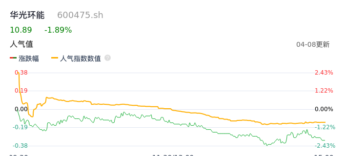 04月08日,华光环能收报10.89,股价涨幅-1.89%,成交金额7395.99万元,换手率0.72%。