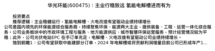 值得注意的是:2024年03月浙商证券的任宇超/张雷/杨占魁/杨子伟分析师,首次发布关于华光环能的研究报告,标题为:华光环能(600475):主业行稳致远 氢能电解槽进而有为。