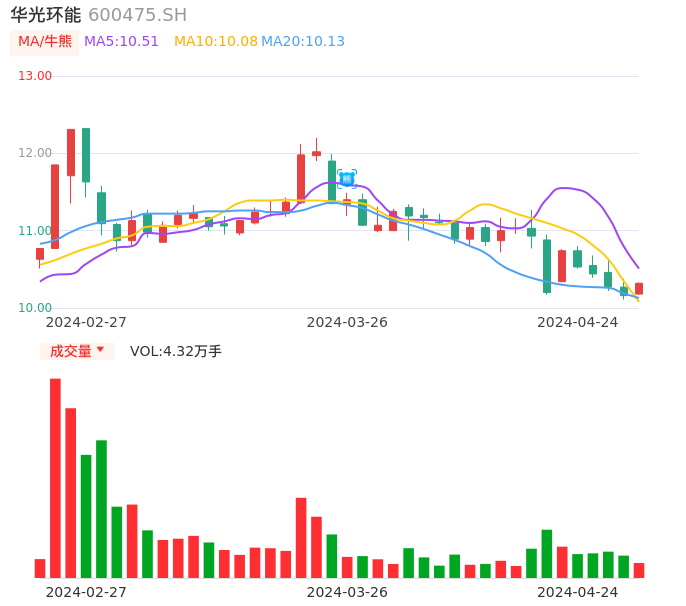 04月24日,华光环能收报10.32,股价涨幅1.57%,成交金额4429.20万元,换手率0.46%。