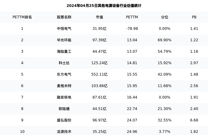 从估值角度看:华光环能最新市盈率PETTM为13.04,在行业内排名1/29,处于69.90分位。