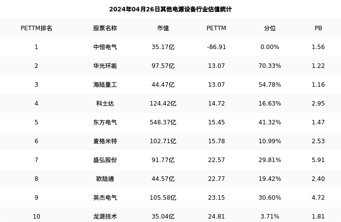 从估值角度看:华光环能最新市盈率PETTM为13.07,在行业内排名1/29,处于70.33分位。