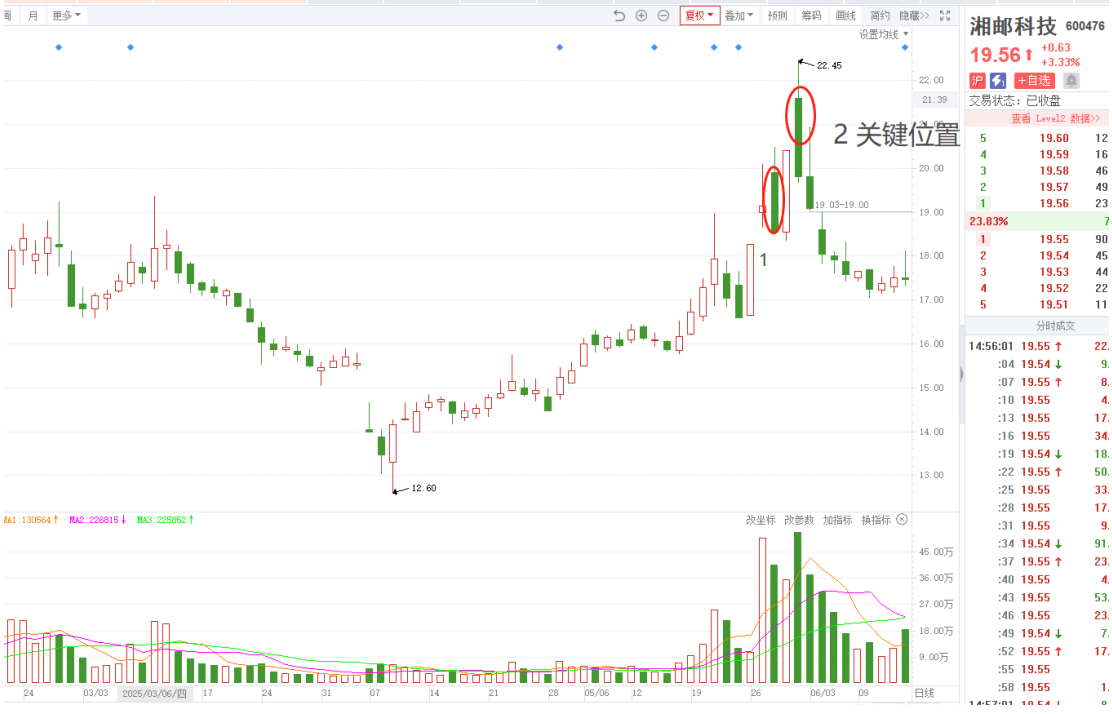 就像湘邮科技,5月30日走到关键位置后,次日未能走出续命阳线,而是冲高回落延续下跌,此后个股行情便草草收场了。