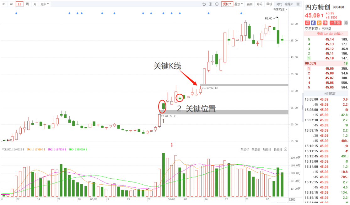 有时从关键位置,到关键K线,不一定是一天完成,但只要走势稳定,且能够在短期内上沿续命阳线突破收盘价新高,都是确立关键K线买点的重要位置。