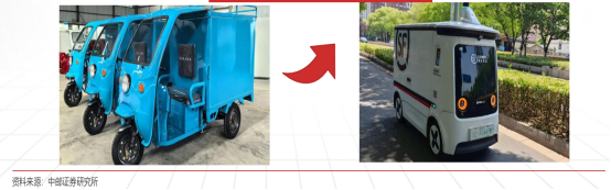 B)无人配送车成本大幅降低,路权扩充应用走向“规模化”。无人配送车一般为低速无人驾驶车辆,载重轻、体积小,无人配送车的成本包括硬件成本、软件成本、运维成本等。2021年无人配送车硬件成本在30-50万元左右,目前裸车价降至5万元左右。目前,无人配送车已在北京、上海、深圳等多个城市进行规模化应用。截至2024年,菜鸟无人车已在全国20多个省份的高校半公开道路上完成超500万公里的运行里程,累计配送超4000万订单;新石器已累计获得超过85个城市颁发的无人车路权“铁牌”,累计获得的牌照数量占全国已发放RoboVan牌照总数的80%以上,已交付超3000辆,自动驾驶里程超3000万公里。