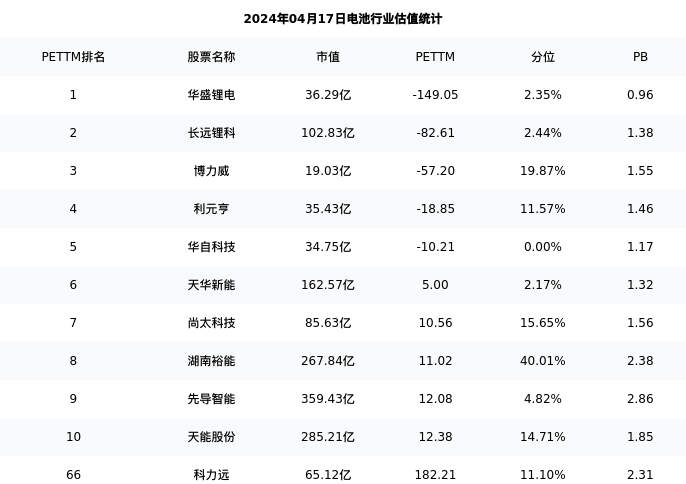 从估值角度看:科力远最新市盈率PETTM为182.21,在行业内排名62/93,处于11.10分位。