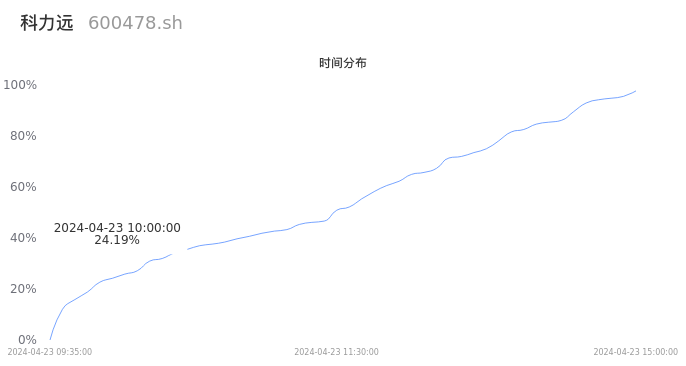根据成交分布分析,该股票当天放量成交,成交清淡。时间上看,早盘前半小时成交量占据当天总成交量的24.19%;价格上看,成交呈现左偏峰。成交分布分析主要研究股票成交的分布特性,不具有预测功能,请知悉。