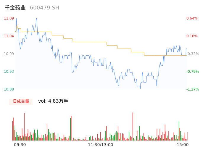 04月10日,千金药业收报11.00,股价涨幅-0.18%,成交金额5306.17万元,换手率1.15%。